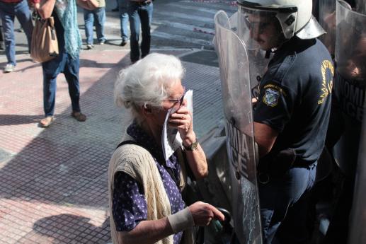 Η πορεία των συνταξιούχων που ξεκίνησε στις 10:00 από την πλατεία Κοτζιά έφτασε κοντά στο Μέγαρο Μαξίμου και βρέθηκε αντιμέτωπη με αστυνομικούς των ΜΑΤ, οι οποίοι έκαναν χρήση χημικών.