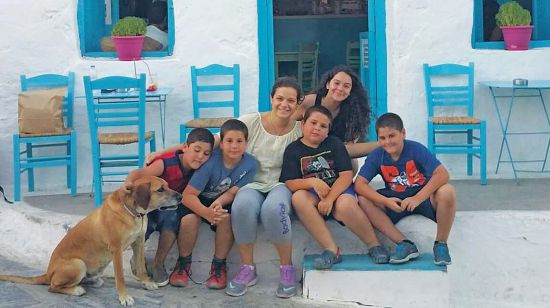 Στο νησί εργάζεται ως υπεύθυνη του καφέ Χαρά, σήμα κατατεθέν στέκι της Χώρας, με τις συντροφιές να ψήνουν ρακές και να παίζουν μουσικές και παιχνίδια τα κρύα βράδια.