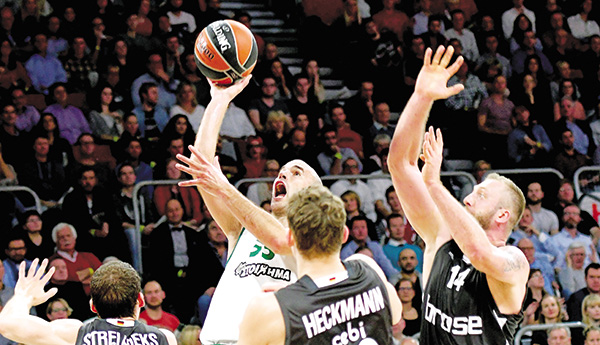 Το «Τριφύλλι» (16/30 δίπ. – 12/27 τρίπ.), με κορυφαίους τους Φελντέιν, Ρίβερς και Καλάθη (που «άγγιξε» το τριπλ-νταμπλ), έφτασε σε μια απίστευτη επικράτηση, παρά το κάκιστο δεύτερο ημίχρονο, καθώς μετά το 42-37 της ανάπαυλας, βρέθηκε πίσω 54-44 (επιμέρους 17-2) των Γερμανών στο 25′. Οι γηπεδούχοι (20/42 δίπ. – 11/22 τρίπ.) αστόχησαν με τον Μίλερ στην εκπνοή. Στο μεταξύ, ισπανικά δημοσιεύματα έκαναν χθες λόγο για ενδιαφέρον του Παναθηναϊκού για τον 36χρονο Ισπανό γκαρντ και άλλοτε παίκτη των Μάλαγα, Χίμκι, Λαμποράλ Κούτσα, Κάρλος Καμπέθας, που έμεινε ελεύθερος από τη Φουενλαμπράδα…