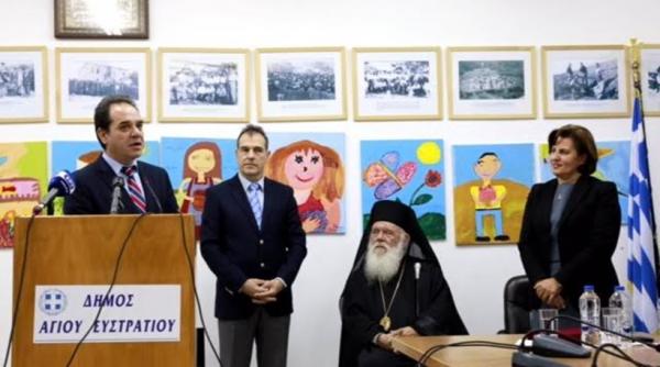 Μετά την υποδοχή του στο νησί, ο Αρχιεπίσκοπος επισκέφθηκε τον Ι. Ναό Γεννήσεως, ενώ στη συνέχεια ανακηρύχθηκε επίτιμος δημότης του Αγίου Ευστρατίου σε ειδική εκδήλωση που πραγματοποιήθηκε στο Δημαρχείο.