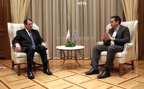 «Η επίλυση του Κυπριακού αποτελεί έναν πρωταρχικό εθνικό στόχο όχι μόνο για τον ελληνισμό και τον Κυπριακό λαό αλλά και για την Ευρώπη και την ευρύτερη περιοχή μας», τόνισε ο Αλέξης Τσίπρας στις δηλώσεις τους με τον Πρόεδρο της Κύπρου Νίκο Αναστασιάδη, μετά τη συνάντηση τους.