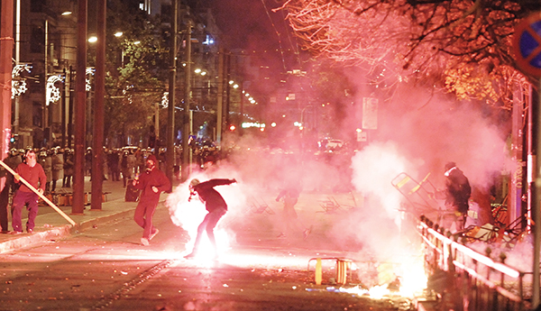 Τα πρώτα έκτροπα στο Πολυτεχνείο σημειώθηκαν λίγο πριν από τις 19.00, όταν ομάδες νεαρών με κουκούλες και κράνη βγήκαν από τις πύλες του Πολυτεχνείου, επί της Πατησίων και της Στουρνάρη, έστησαν οδοφράγματα χρησιμοποιώντας καρέκλες, θρανία και κάδους απορριμμάτων, και άρχισαν να εκτοξεύουν μολότοφ και κροτίδες προς τους άνδρες των ΜΑΤ.