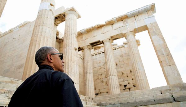 «Στο τελευταίο μου ταξίδι στο εξωτερικό ως πρόεδρος είχα τελικά την ευκαιρία να επισκεφθώ την Ελλάδα και να γνωρίσω την πανέμορφη ιστορία της χώρας αυτής. Στεκόμενος εδώ στην Ακρόπολη, στον χώρο γέννησης της δημοκρατίας και των δημοκρατικών αξιών που μοιραζόμαστε ως Αμερικανοί, αντιλαμβάνεσαι την αξία μιας κυβέρνησης του λαού, από τον λαό, για τον λαό – και πώς οι άνθρωποι, ανεξαρτήτως του έθνους στο οποίο ανήκουν, θα αποφασίζουν το είδος των χωρών στις οποίες θα ζούμε, τα ιδεώδη που θα επιδιώκουμε και τις αξίες που θα μας ορίζουν» αναφέρει μεταξύ άλλων ο Αμερικανός πρόεδρος.