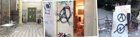 Οι καταληψίες άφησαν πίσω τους κυριολεκτικά καμένη γη, καθώς τίποτα δεν γλίτωσε από τη μανία των ταραξιών, οι οποίοι εφορμούσαν από αυτό επιτιθέμενοι στις διμοιρίες των ΜΑΤ, που για αρκετές ώρες είχαν περιοριστεί σε ρόλο παρατηρητή ή εκτόξευαν από μακριά δακρυγόνα.