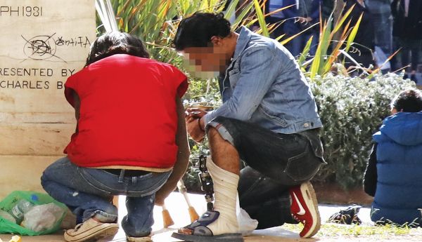«Στα στενά γύρω από την Κάνιγγος γίνεται η διακίνηση και πάνω στην πλατεία η χρήση. Οποια ώρα και αν περάσει κανείς από την πλατεία θα δει 15-20 άτομα να τρυπιούνται. Και στους γύρω δρόμους Αφρικανούς, Αλβανούς και Ελληνες, με κινητά στα χέρια, που κάνουν εμπόριο έξω από τα σπίτια και τα καταστήματά μας» λέει η κυρία Γεωργία Μπλάνη, μέλος του Συλλόγου Κατοίκων και Επαγγελματιών «Τα Εξάρχεια».