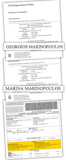 Στις ROCHDALE HOLDING CORP, 14 EAST 63RD STREET MANHATTAN CORPORATION και WINGDALE HOLDING CORP διευθύνουσα σύμβουλος είναι η Μαρίνα Μαρινοπούλου, σύζυγος του Λεωνίδα, ενώ στη 45 EAST 63RD STREET CORPORATION διευθύνων σύμβουλος εμφανίζεται ο Γιώργος Μαρινόπουλος, γιος του Λεωνίδα.
