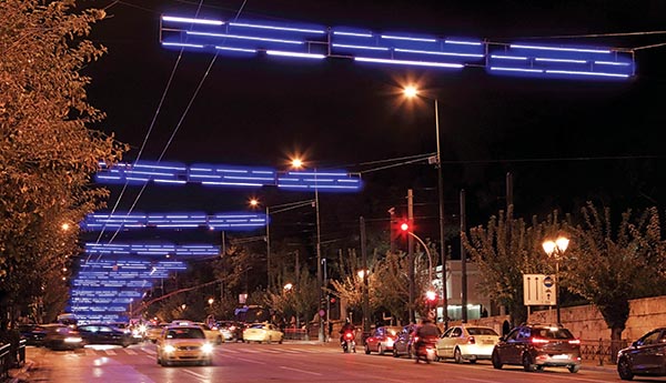 Μόνο χριστουγεννιάτικη διάθεση, χαρά, αγαλλίαση, λάμψη και αισιοδοξία δεν αποπνέει ο στολισμός που έστησε με δικές του δαπάνες το Ιδρυμα Ωνάση στον πιο κεντρικό οδικό άξονα της Αθήνας, τη Βασιλίσσης ΣοφίαςΤοποθετήθηκαν μπλε ράβδοι φωτισμού που μάλλον θυμίζουν…. τις παγίδες για μύγες και έντομα που υπάρχουν σε κρεοπωλεία και ταβέρνες.