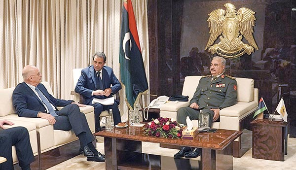 Ταξίδι «αστραπή» από τον Δένδια, που πήγε στη Λιβύη και τα είπε με τον Χαφτάρ