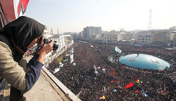 Στο πανεπιστήμιο της Τεχεράνης, όπου τελέστηκε η κηδεία του Σουλεϊμανί, παρέστη ο ανώτατος θρησκευτικός ηγέτης του Ιράν αγιατολάχ Αλί Χαμενεΐ, έχοντας στο πλευρό του τον Ιρανό πρόεδρο Χασάν Ρουχανί και τον πρόεδρο του Κοινοβουλίου Αλί Λαριτζανί. Ο ηγέτης της Χεζμπολάχ υποστηρίζει ότι είχε προειδοποιήσει τον Σουλεϊμανί ότι κινδύνευε η ζωή του. Η κόρη του Σουλεϊμανί απευθυνόμενη στο τεράστιο πλήθος που είχε συγκεντρωθεί είπε ότι οι ΗΠΑ και ο σύμμαχός τους, το Ισραήλ, θα ζήσουν «μαύρες ημέρες».