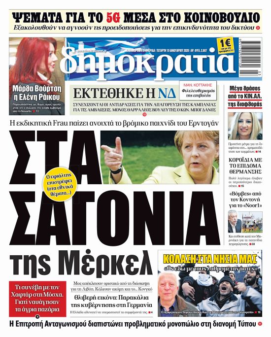 Όσο για τους Γερμανούς; Δεν μπήκαν καν στον κόπο να εξηγήσουν γιατί θα λείπει η Ελλάδα από μια τόσο κρίσιμη συνάντηση, ενώ με τον πιο χυδαίο πολιτικά τρόπο απλώς εξέφραζαν χθες την… κατανόησή τους για το θεμιτό ενδιαφέρον και την ανησυχία της χώρας μας σχετικά με τα μελλούμενα στη Λιβύη, διευκρινίζοντας ότι η διάσκεψη του Βερολίνου δεν θα ασχοληθεί με θέματα θαλάσσιων συνόρων, πιθανώς δικαιωμάτων εκμετάλλευσης στη Μεσόγειο.