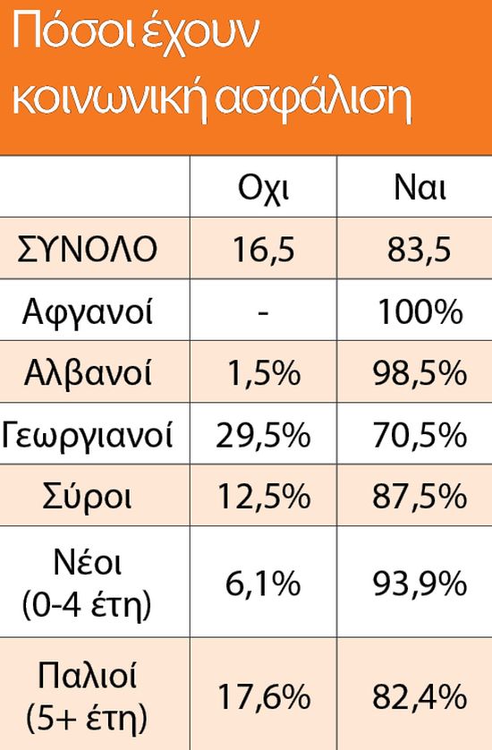 Ένα από τα εντυπωσιακά στοιχεία που αναδεικνύονται και ταυτόχρονα γεννούν εύλογες απορίες είναι ότι η συντριπτική πλειονότητα των λαθρομεταναστών και το 100% των Αφγανών καλύπτονται από κοινωνική ασφάλιση!