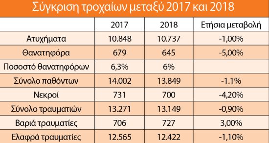 10.737 τροχαία σημειώθηκαν στους δρόμους ολόκληρης της χώρας το 2018, 700 άτομα άφησαν την τελευταία πνοή τους στην άσφαλτο και 265 οδηγοί που σκοτώθηκαν δεν επέβαιναν σε μοτοσικλέτες αλλά σε επιβατικά αυτοκίνητα.