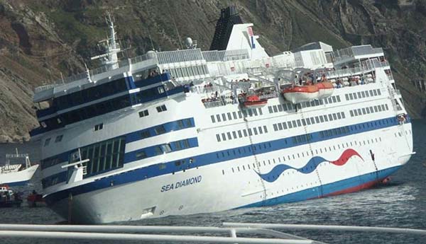 Ποια συμφέροντα κρατούν στον βυθό της καλντέρας, στη Σαντορίνη, από τον Απρίλιο του 2007 μια «τοξική βραδυφλεγή βόμβα», όπως έχει ονομαστεί το ναυάγιο του κρουαζιερόπλοιου «Sea Diamond»; Ποια συμφέροντα κρατούν 400 τόνους μαζούτ, ελαιώδη μείγματα, λιπαντικά, υγρά μπαταρίας, καλώδια, μπογιές, επιχρίσματα και όλων των ειδών τα χημικά μέσα σε ένα κονσερβοκούτι, το οποίο, καθώς θα διαβρώνεται σταδιακά, θα τα απελευθερώνει στην κλειστή θάλασσα της όμορφης καλντέρας;