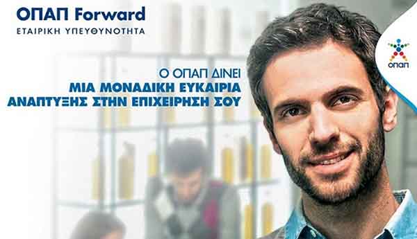 Αιτήσεις συμμετοχής έως και τις 26 Μαρτίου 2020Το επιτυχημένο του πρόγραμμα εταιρικής υπευθυνότητας «ΟΠΑΠ Forward» συνεχίζει για τέταρτη χρονιά ο ΟΠΑΠ. Η εταιρεία πιστή στη στρατηγική της να δημιουργεί αξία για την ελληνική κοινωνία και την οικονομία, υποδέχεται έντεκα νέες μικρομεσαίες επιχειρήσεις με στόχο να δημιουργήσει μια δυναμική ομάδα 60 εταιρειών που μέσα από την ανάπτυξη τους θα συμβάλουν και στην ενίσχυση της ελληνικής αγοράς.