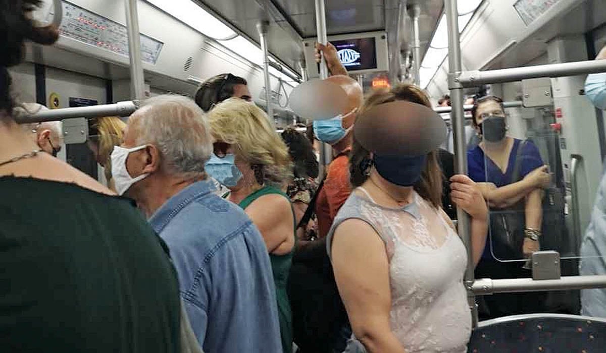 Παρά το γεγονός ότι οι επιβάτες συμμορφώνονται με τα μέτρα και δεν κάθονται στις θέσεις που έχουν την ειδική ένδειξη, οι αποστάσεις είναι αδύνατον να κρατηθούν, καθώς έχει τεθεί σε ισχύ το θερινό πρόγραμμα δρομολογίων, που μετατρέπει σε εφιάλτη τη μετακίνηση με τα μέσα μαζικής μεταφοράς.