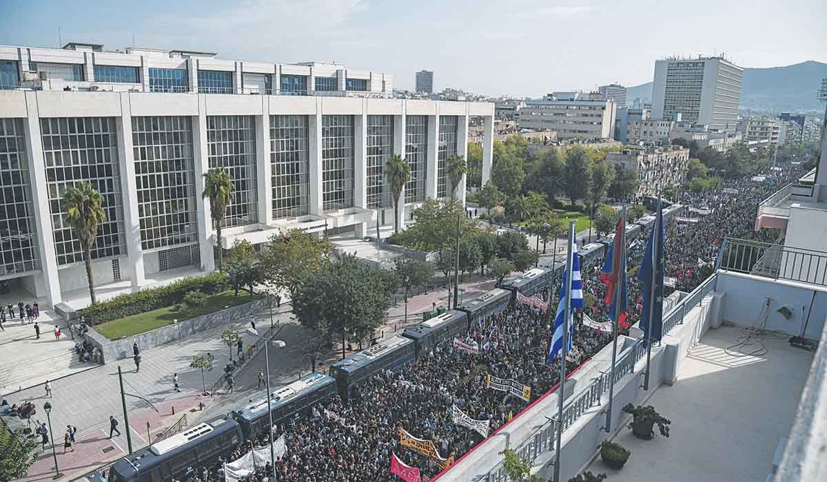 Οι νεαροί κινήθηκαν στο ανερχόμενο ρεύμα της Αλεξάνδρας προς τη λεωφόρο Κηφισίας, ενώ οι αστυνομικές δυνάμεις έκαναν τρεις προσαγωγές. Σύμφωνα με την ΕΛ.ΑΣ., δέκα υπηρεσιακά οχήματα υπέστησαν φθορές.