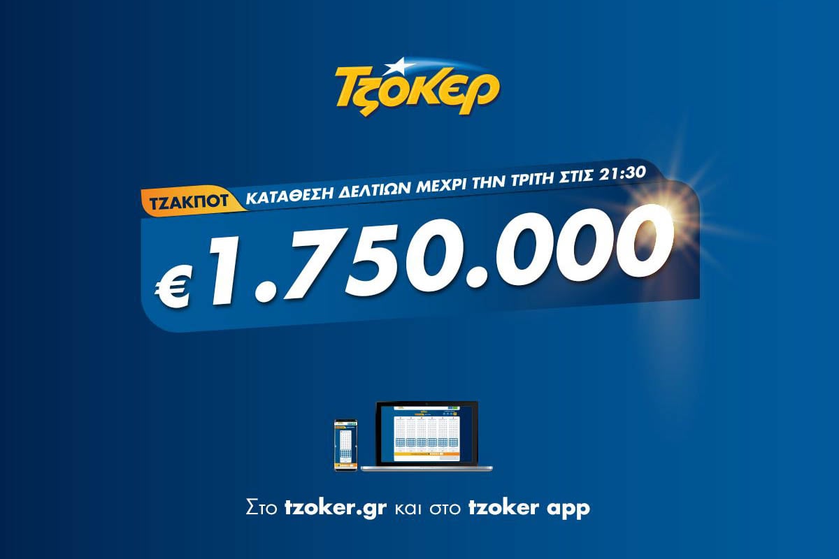 Η κλήρωση του ΤΖΟΚΕΡ θα πραγματοποιηθεί στις 22:00 και θα μεταδοθεί ζωντανά από το κανάλι του ΟΠΑΠ στο YouTube, την ιστοσελίδα του tzoker.gr και μέσω της εφαρμογής ΤΖΟΚΕΡ.