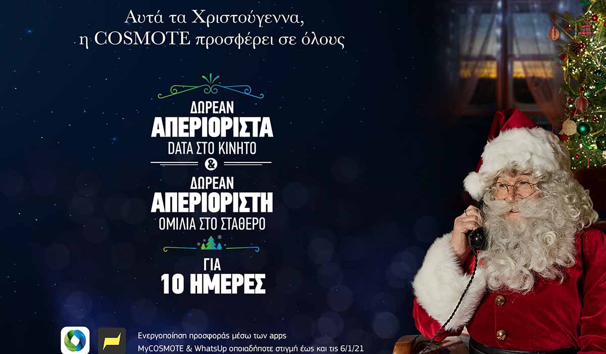 COSMOTE: Χριστούγεννα με απεριόριστα data στο κινητό & απεριόριστη ομιλία στο σταθερό, δωρεάν για όλους