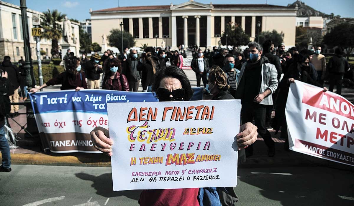 Στους δρόμους βγήκαν χθες οι καλλιτέχνες σε Αθήνα και Θεσσαλονίκη, προκειμένου να διαμαρτυρηθούν για τη μηδενική στήριξη από την Πολιτεία και για την ενσωμάτωση στο νομοσχέδιο του υπουργού Επικρατείας Θεόδωρου Λιβάνιου της τροποποιημένης ευρωπαϊκής οδηγίας για την παροχή υπηρεσιών στον οπτικοακουστικό τομέα, που συζητήθηκε στη Βουλή. Οπως καταγγέλλουν, οι διατάξεις του σχετίζονται με τον «τρομονόμο» και αναμένεται να οδηγήσουν σε λογοκρισία και σε ποινικές διώξεις στον κλάδο που έχει χτυπηθεί πολύ από την πανδημία.