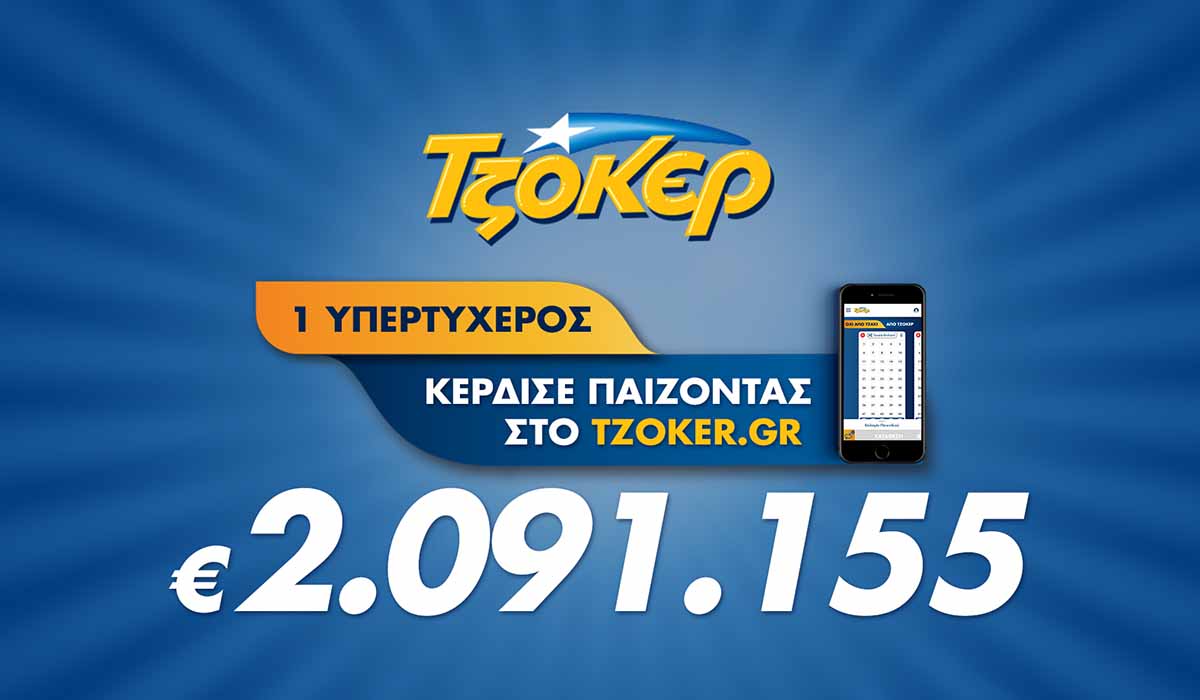 Τυχερός επί τρία ήταν ο μεγάλος νικητής της χθεσινής κλήρωσης του ΤΖΟΚΕΡ, ο  οποίος, εκτός από το μεγάλο έπαθλο των 2.091.155 ευρώ, κέρδισε και 16.971 ευρώ στη 2η κατηγορία του παιχνιδιού, όπου σημείωσε δύο επιτυχίες. Έτσι, ο τυχερός παίκτης, που έπαιξε ΤΖΟΚΕΡ μέσω διαδικτύου, κέρδισε συνολικά 2.108.126 ευρώ.