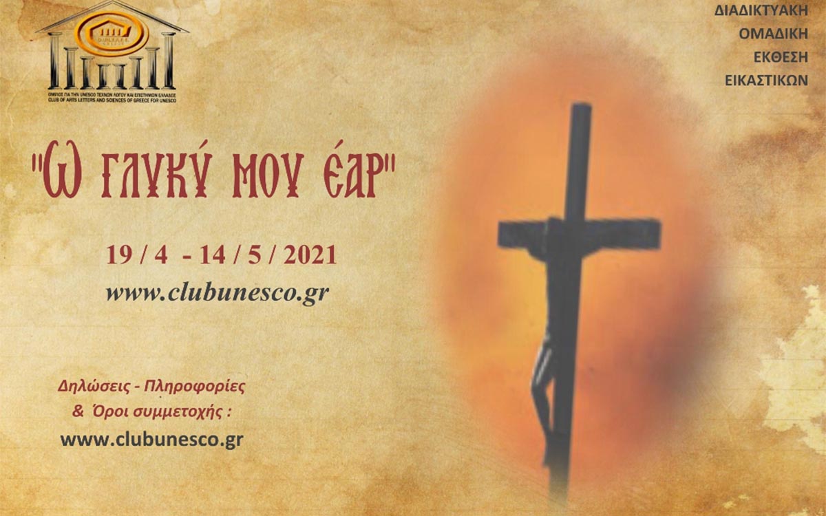 Ο Όμιλος για την UNESCO Τεχνών, Λόγου & Επιστημών Ελλάδος, συνεχίζει τη δημιουργία διαδικτυακών εκθέσεων στον καιρό της πανδημίας, διοργανώνοντας την 3η διορθόδοξη, ομαδική έκθεση εικαστικών – αγιογραφίας με τίτλο: «Ω γλυκύ μου έαρ». Η έκθεση θα φιλοξενηθεί ταυτόχρονα και διαδικτυακά στην ιστοσελίδα του Ομίλου, καθώς και στις σελίδες του στα δίκτυα Facebook και Youtube, από 19/4 ως 14/5/2021.