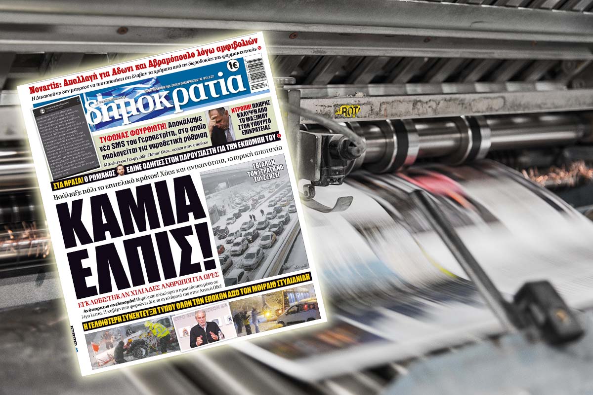 Διαβάστε ΔΩΡΕΑΝ το σημερινό φύλλο της «δημοκρατίας»