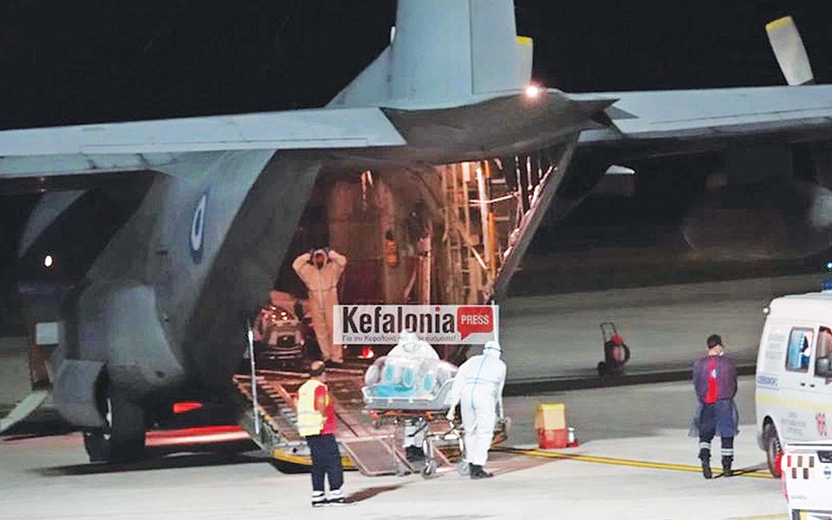 Ήταν λίγο πριν από τα μεσάνυχτα του Σαββάτου, όταν προσγειώθηκε στο αεροδρόμιο της Κεφαλλονιάς το C-130 της Πολεμικής Αεροπορίας, προκειμένου να παραλάβει τον 29χρονο τουρίστα και τη συνοδό του. Ο φωτογραφικός φακός της ιστοσελίδας kefaloniapress αποτύπωσε καρέ καρέ τη στιγμή της αεροδιακομιδής του ζευγαριού από το νησί του Ιονίου στην Αθήνα, δημοσιεύοντας εικόνες που μοιάζουν βγαλμένες από αμερικανική ταινία τρόμου και, την ίδια ώρα, φέρνουν στον νου σκηνές τόσο από την κινεζική πόλη Ουχάν, όπου πρωτοεμφανίστηκε ο νέος κορονοϊός, όσο και από τη Σανγκάη, όπου το πρόσφατο lockdown είχε βυθίσει στην απόγνωση τους κατοίκους!