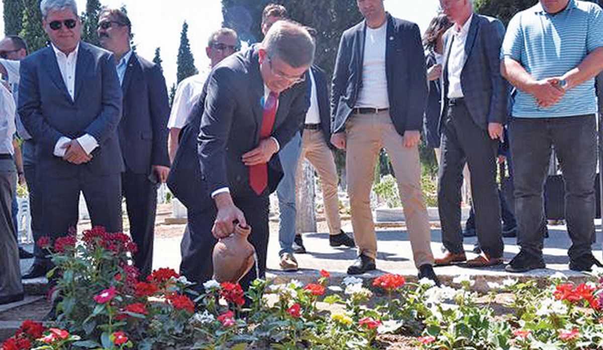 Ο πρώην υπουργός Εξωτερικών της γείτονος και νυν πρόεδρος του αντιπολιτευόμενου Κόμματος του Μέλλοντος, γνωστός και για το δόγμα του Στρατηγικού Βάθους, επισκέφθηκε αρχικά τον τάφο του ψευδομουφτή Αχμέτ Μέτε.