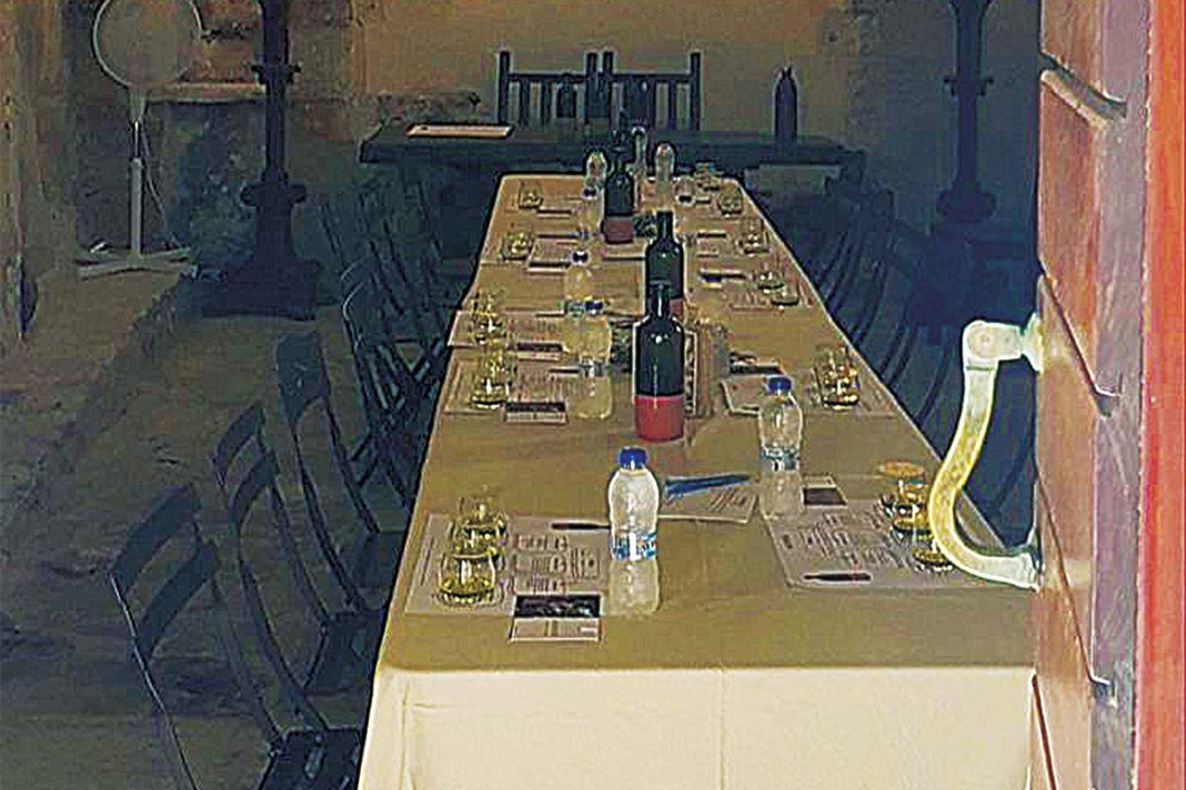 Οπως φαίνεται στη φωτογραφία, το… σεμινάριο γίνεται μέσα στον Ιερό Ναό του Αγίου Ανδρέα, όπου έχουν τοποθετηθεί τραπεζοκαθίσματα με ποτήρια για τη γευσιγνωσία του τοπικού ελαιολάδου! Μπροστά σε κάθε καλεσμένο βρίσκονται τρία ποτήρια γεμάτα με λάδι της περιοχής, αλλά και ένα μπουκαλάκι νερό. Μάλιστα, για να εξασφαλιστεί η… κατανυκτική ατμόσφαιρα είναι αναμμένα κεριά! Με βάση την απόφαση της Εφορείας Αρχαιοτήτων Λακωνίας δόθηκε άδεια για τη διοργάνωση των σεμιναρίων, μέσω της παραχώρησης του χώρου του μνημείου και της καταβολής του προβλεπόμενου τιμήματος για τη χρήση του. Σύμφωνα με καταγγελίες που έφτασαν στην εφημερίδα μας, οι διοργανωτές του σεμιναρίου πρόσφεραν στους συμμετέχοντες, εκτός από ελαιόλαδο, και… λικέρ, ενώ δέχονταν και παραγγελίες για την πώληση των προϊόντων.