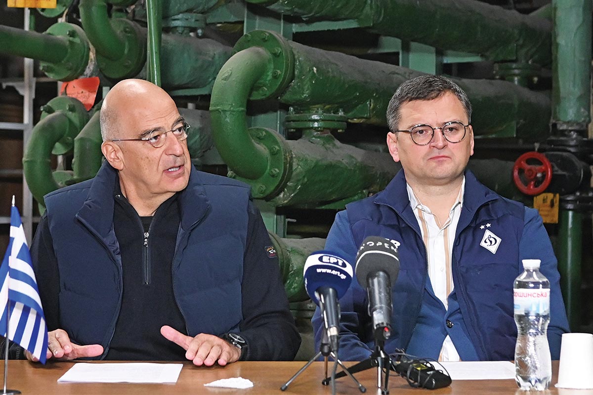 Καυστικός απέναντι στον αναθεωρητισμό και στην προκλητικότητα της Τουρκίας ήταν και στην τοποθέτησή του στα καταφύγια ο Ελληνας υπουργός Εξωτερικών. Είπε στον ομόλογό του ότι οι Ελληνες καταλαβαίνουμε τους Ουκρανούς καλύτερα από όλους: «Γιατί οι Ελληνες έχουν επίσης έναν μεγάλο γείτονα στην Ανατολή. Εναν γείτονα που έχει εκδώσει απειλή πολέμου, casus belli εναντίον μας. Εναν γείτονα που ζητά την αποστρατιωτικοποίηση της επικράτειάς μας, ενώ συγκεντρώνει μεγάλες δυνάμεις ακριβώς απέναντι από τα σύνορά μας. Εναν γείτονα που παράνομα ισχυρίζεται ότι μέρος της επικράτειάς μας είναι δικό του. Εναν γείτονα που επανειλημμένα λέει ότι μπορεί να έρθει ξαφνικά ένα βράδυ. Εναν γείτονα που δηλώνει ότι αν δεν υποκύψουμε στις επιθυμίες του, θα έχουμε τη μοίρα της Ουκρανίας». Ο κ. Δένδιας είχε συναντήσεις και με άλλους Ουκρανούς αξιωματούχους.