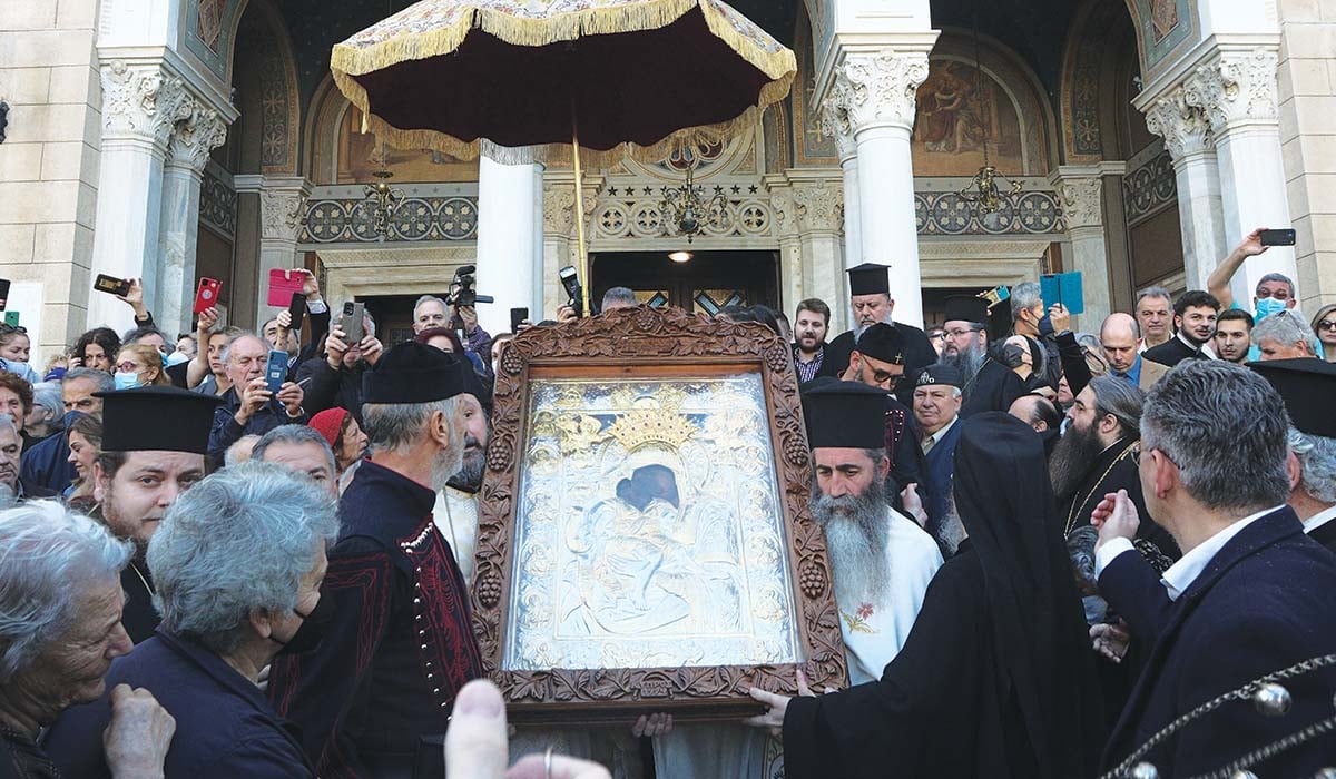 Κατά τη 15ήμερη παραμονή της θαυματουργής εικόνας στη Μητρόπολη οι πιστοί σχημάτιζαν τεράστια ουρά που έφτανε σχεδόν μέχρι το Σύνταγμα