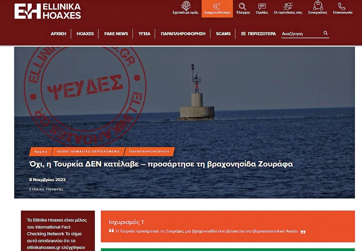 Για μία ακόμα φορά η γνωστή προπαγανδιστική ιστοσελίδα Ellinika Hoaxes, που υποτίθεται ότι έχει στόχο τον έλεγχο των fake news του διαδικτύου και χρηματοδοτείται αδρά γι’ αυτό, καταστρατηγεί κάθε κώδικα δεοντολογίας και με πρόχειρο, όσο και ατεκμηρίωτο, τρόπο επιχειρεί να εμφανίσει ως ψευδές το πρωτοσέλιδο δημοσίευμα της «κυριακάτικης δημοκρατίας» που υπέγραψε η Κύρα Αδάμ και αφορά τις τουρκικές προκλήσεις στη νήσο Ζουράφα. Το σχετικό κείμενο-ντροπή υπογράφει συντάκτης που ονομάζεται Στέλιος Πουρνής και δηλώνει απόφοιτος του Τμήματος Δημοσιογραφίας και ΜΜΕ του ΑΠΘ, χωρίς να προκύπτει ότι έχει κάποια ειδίκευση σε θέματα εξωτερικών και άμυνας. Στο κείμενό του αναφέρει μεταξύ άλλων: «Στο άρθρο (σ.σ.: εννοεί της “κυριακάτικης δημοκρατίας”) εμφανίζεται ο ισχυρισμός ότι η Τουρκία ανήγγειλε πως η βραχονησίδα Ζουράφα βρίσκεται αποκλειστικά και μόνον μέσα στο FIR Κωνσταντινούπολης, εντός του οποίου η Τουρκία έχει αποκλειστικά κυριαρχικά δικαιώματα. Ως τεκμήρια παρουσιάζονται από την αρθρογράφο δύο οδηγίες προς αεροναυτιλλομένους (NOTAMs). Ωστόσο, από την αλυσιδωτή επικοινωνία ανάμεσα στην ελληνική και την τουρκική πλευρά λείπει η πρώτη οδηγία της 12ης Οκτωβρίου, μέσω της οποίας ανακοινώνεται η δέσμευση συγκεκριμένου τμήματος του εναέριου χώρου του FIR Κωνσταντινούπολης για τους σκοπούς αεροπορικής άσκησης. Δεν προκύπτει από την ερμηνεία των NOTAM πως αυτές αποτελούν “την πρώτη επίσημη διεθνή, τουρκική ανακοίνωση υφαρπαγής/προσάρτησης ελληνικής βραχονησίδας στο Β. Αιγαίο”, και αυτό γιατί η Ζουράφα βρίσκεται εκτός του προαναφερθέντος δεσμευμένου τμήματος του εναέριου χώρου. Ομοίως, στην τουρκική NOTAM δεν γίνεται λόγος για τον τουρκικό εθνικό εναέριο χώρο, αλλά για το FIR Κωνσταντινούπολης. Δεν τίθεται τελικά ζήτημα πρώτης επίσημης ανακοίνωσης για προσάρτηση ελληνικού εδάφους από την Τουρκία, αλλά μάλλον για τη γνωστή άρνηση της τουρκικής πλευράς να αναγνωρίσει στην Ελλάδα την πλήρη επήρεια του εθνικού εναέριου χώρου στα 10 ναυτικά μίλια».