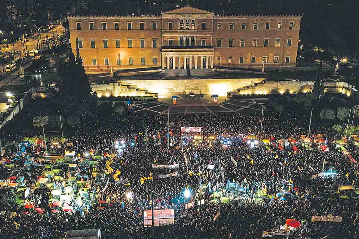Με κόρνες, συνθήματα, τραγούδια, πανό και ελληνικές σημαίες, χιλιάδες αγρότες και απλοί πολίτες βρέθηκαν από χθες νωρίς το μεσημέρι στην πλατεία Συντάγματος. Το κλίμα, όπως το κατέγραψε η «δημοκρατία», φανέρωνε δυναμισμό και αποφασιστικότητα, ωστόσο οι ίδιοι οι αγρότες φρόντισαν να μην υπάρξουν ακρότητες. Αυτό, άλλωστε, έχει φέρει αυτή τη φορά στο πλευρό τους την κοινή γνώμη, γι’ αυτό και κατευθυνόμενοι οι αγρότες προς το Σύνταγμα δέχθηκαν σε αρκετά σημεία τα χειροκροτήματα των περαστικών.