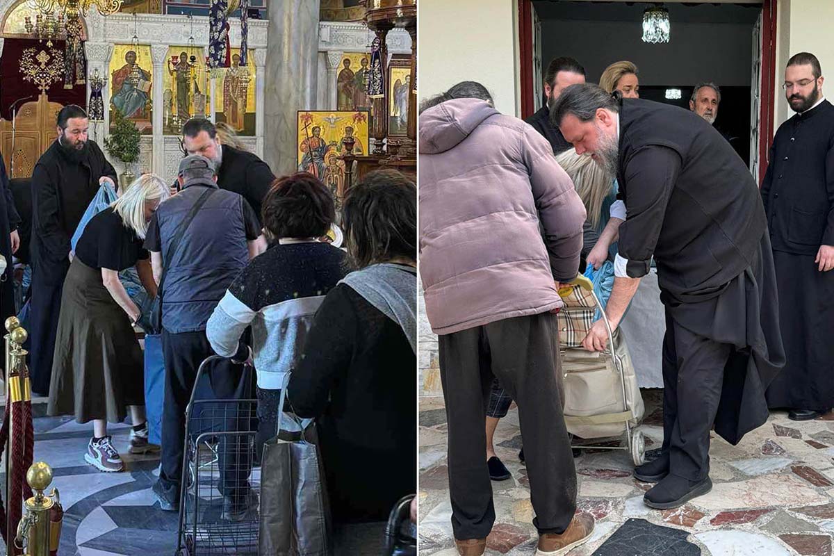 Την παράδοση των δεμάτων πραγματοποίησε ο ίδιος o Σεβασμιώτατος, συνοδευόμενος από κληρικούς και εθελοντές των κοινωνικών δομών της Ιεράς Μητροπόλεως.