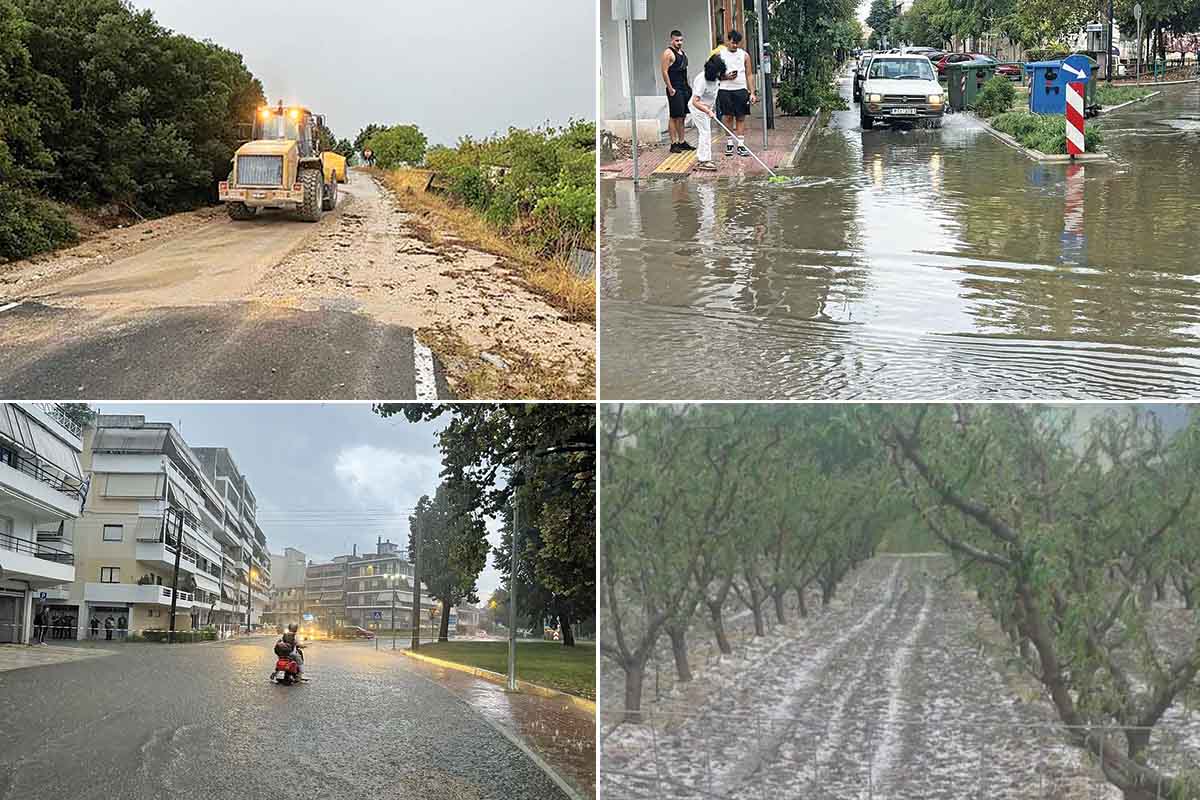 Πλημμυρισμένους δρόμους, ξηλωμένες στέγες, πεσμένα δέντρα, προβλήματα στην ηλεκτροδότηση και ζημιές σε υποδομές και καλλιέργειες άφησε πίσω της η κακοκαιρία εξπρές που έπληξε πολλές περιοχές της χώρας τα προηγούμενα 24ωρα και η οποία συνοδευόταν από δυνατούς ανέμους και σφοδρές χαλαζοπτώσεις!
