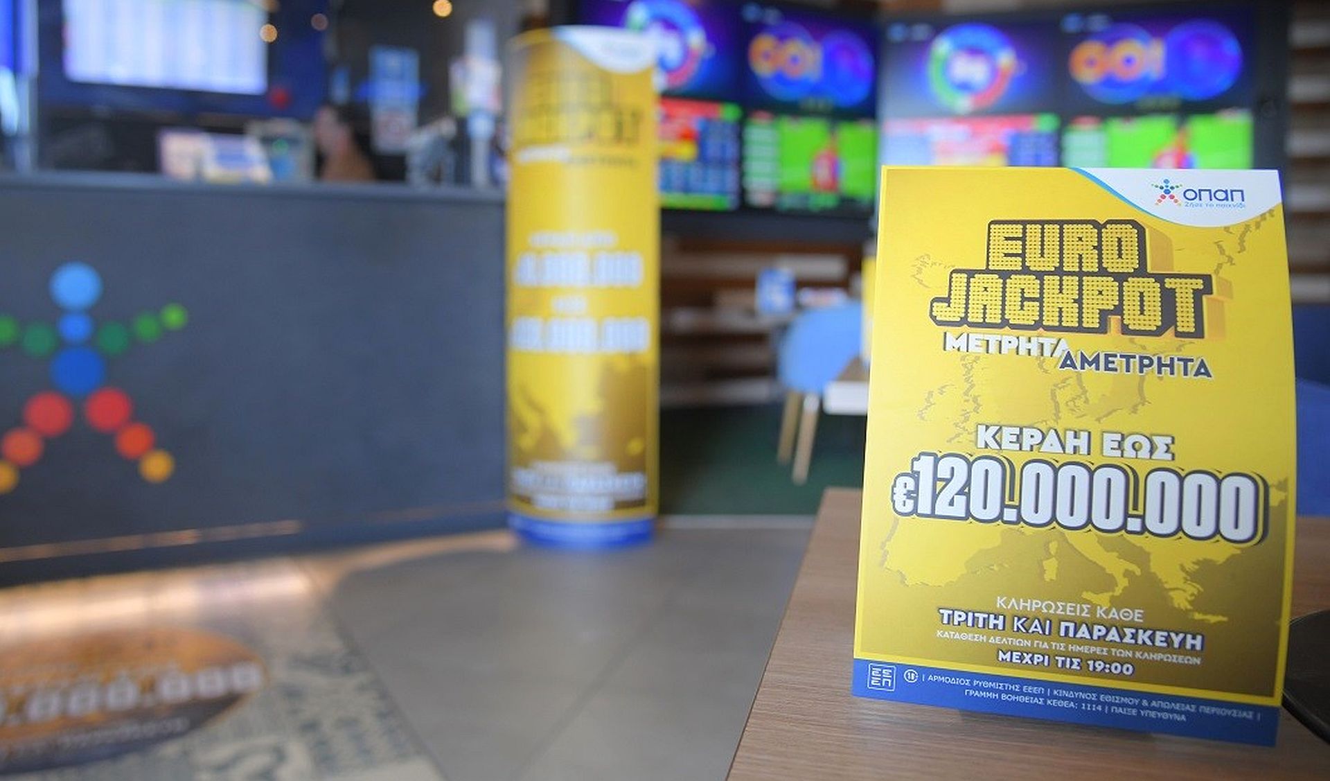 Oι κληρώσεις του Eurojackpot πραγματοποιούνται κάθε Τρίτη, στις 21:15, και Παρασκευή, στις 21:00, στο Ελσίνκι. Στο παιχνίδι, που μοιράζει έπαθλα που ξεκινούν από 10 εκατομμύρια και φτάνουν έως και 120 εκατομμύρια ευρώ, συμμετέχουν ακόμα 18 χώρες εκτός της Ελλάδας.