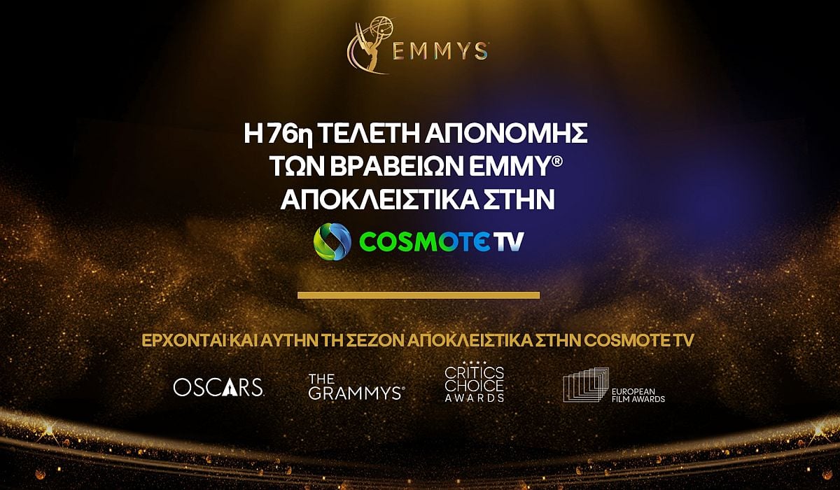 Η νέα τηλεοπτική σεζόν ξεκινάει δυναμικά,με την COSMOTETVνα φιλοξενεί για ακόμα μία χρονιά τις μεγαλύτερες τελετές απονομής βραβείων στον χώρο του κινηματογράφου, της μουσικής και της «μικρής οθόνης». Η αρχή θα γίνει με την 76η τελετή απονομής των βραβείων EMMY, έναν από τους μεγαλύτερους τηλεοπτικούς θεσμούς παγκοσμίως, ο οποίος τιμά τις καλύτερες ερμηνείες και σειρές που ξεχωρίζουν κάθε χρόνο. Η λαμπερή βραδιά θα μεταδοθεί ζωντανά τα ξημερώματα της Δευτέρας 16/9 (03.00) στο COSMOTECINEMA 2HD, σε σχολιασμό της Ιωσηφίνας Γριβέα. Το βράδυ της Δευτέρας (16/9) στις 22.00, θα ακολουθήσει στο ίδιο κανάλι (COSMOTE CINEMA 2HD) η μετάδοση της τελετής με ελληνικούς υπότιτλους.