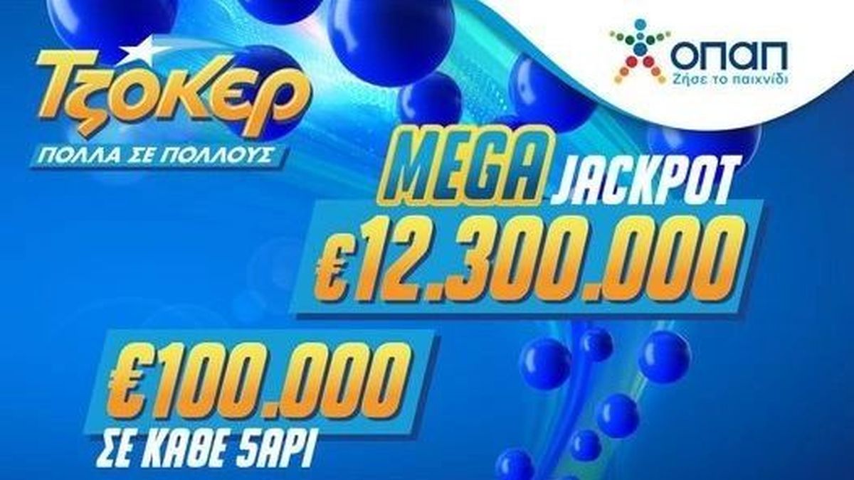 Με οκταψήφια τζακ ποτ συνεχίζονται οι κληρώσεις του ΤΖΟΚΕΡ, το οποίο μοιράζει απόψε τουλάχιστον 12,3 εκατομμύρια ευρώ στους νικητές της πρώτης κατηγορίας.