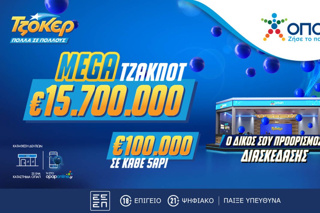 Λίγες ώρες απομένουν για τη μεγάλη κλήρωση του ΤΖΟΚΕΡ, καθώς απόψε στις 22:00, το δημοφιλές παιχνίδι του ΟΠΑΠ μοιράζει 15,7 εκατ. ευρώ στους νικητές της πρώτης κατηγορίας. Όσοι επιθυμούν να διεκδικήσουν το έπαθλο – το μεγαλύτερο των τελευταίων 7 ετών – μπορούν να καταθέτουν τα δελτία τους μέχρι τις 21:30, είτε στα καταστήματα ΟΠΑΠ όλης της χώρας, είτε διαδικτυακά στο opaponline.gr. Η κλήρωση για το ποσό ρεκόρ, που έχει προκύψει μετά από 32 συνεχόμενα τζακ ποτ, θα μεταδοθεί ζωντανά από το κανάλι του ΟΠΑΠ στο YouTube.