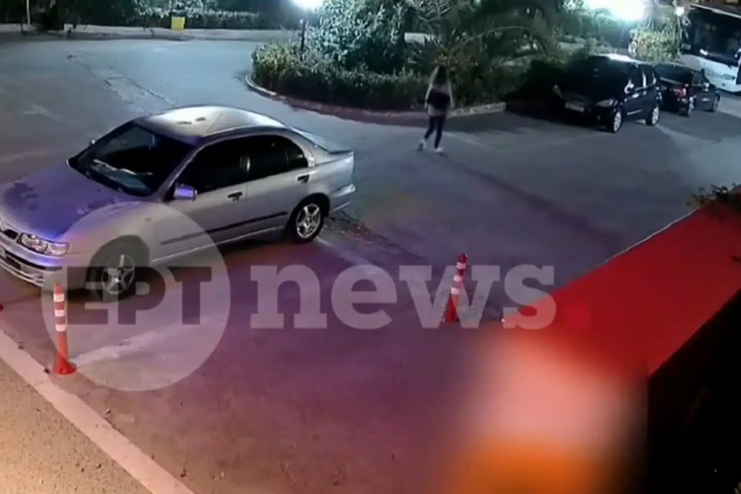 Στο βίντεο από κάμερα ασφαλείας, που μετέδωσε η ΕΡΤ, διακρίνεται η 41χρονη Γαρυφαλλιά να βγαίνει από ένα ξενοδοχείο και να κοντοστέκεται στο πάρκινγκ λίγο πριν της επιτεθεί ο σύντροφός της.