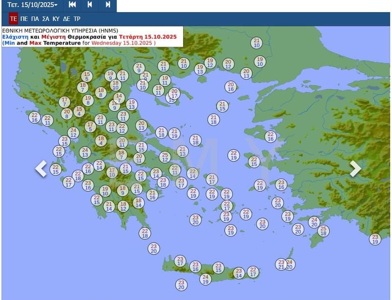 Θερμοκρασία: Από 15 έως 22 και στα Δωδεκάνησα από 19 έως 24 με 25 βαθμούς Κελσίου.
