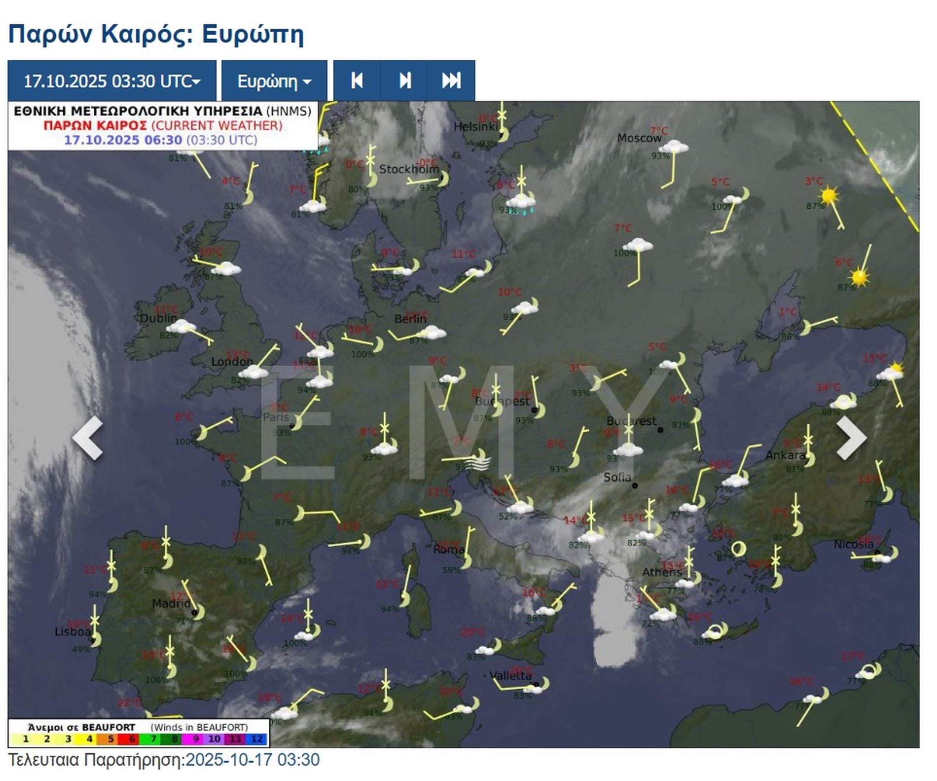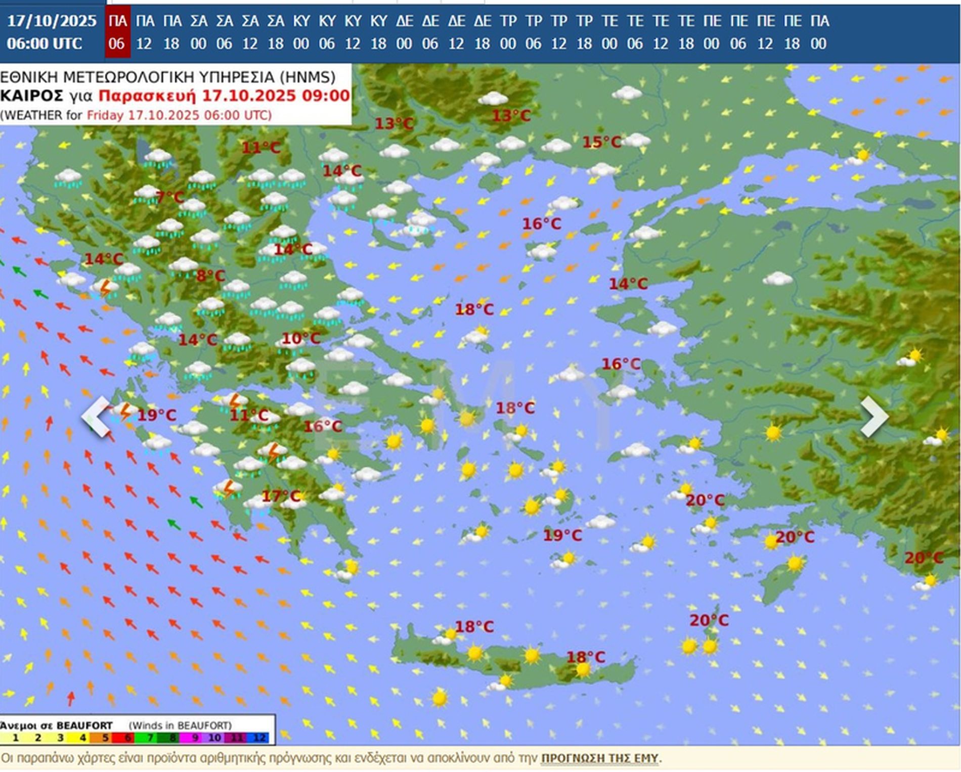 Σύμφωνα με την Εθνική Μετεωρολογική Υπηρεσία, σήμερα, Παρασκευή 17 Οκτωβρίου στο Ιόνιο, τα δυτικά ηπειρωτικά και βαθμιαία στην κεντρική και ανατολική Μακεδονία προβλέπονται νεφώσεις παροδικά αυξημένες με τοπικές βροχές. Στα δυτικά θα εκδηλωθούν και σποραδικές καταιγίδες. Τα φαινόμενα τοπικά στο Ιόνιο πιθανώς να είναι ισχυρά. Στην υπόλοιπη χώρα λίγες νεφώσεις παροδικά αυξημένες.