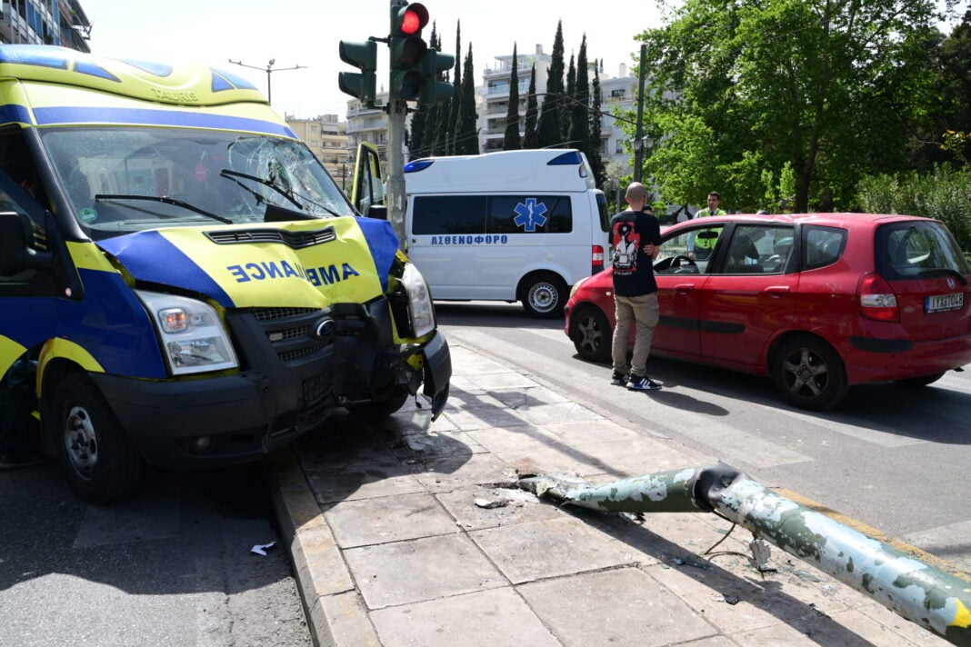 Η σύγκρουση προκάλεσε μόνο υλικές ζημιές, ενώ, όπως έγινε γνωστό, το ασθενοφόρο δεν μετέφερε ασθενή τη στιγμή του συμβάντος.