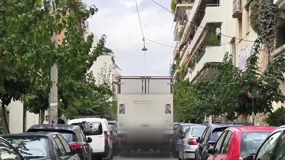 Το περιστατικό σημειώθηκε στη συμβολή των οδών Καλλιδρομίου και Θεμιστοκλέους, με το βαρύ όχημα να παραμένει «κολλημένο» στο σημείο από τις 10:15 π.μ., δημιουργώντας κυκλοφοριακό χάος και ένταση στη γειτονιά.