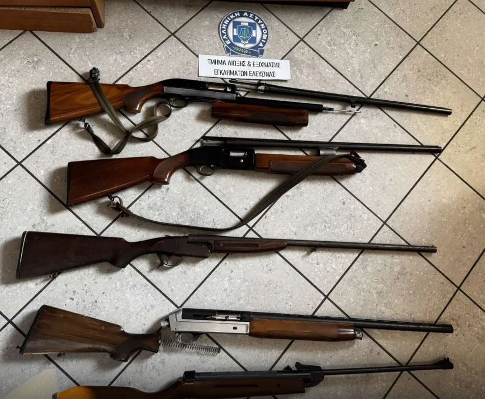 Στο σπίτι του 17χρονου με το πιστόλι βρέθηκε ολόκληρο οπλοστάσιο. Συγκεκρειμένα είχε στην κατοχή του πέντε καραμπίνες χωρίς την απαιτούμενη άδεια κατοχής, αεροβόλο πιστόλι, σιδερογροθιά, στιλέτο, σουγιάς, μαχαίρια, 85 κυνηγητικά φυσίγγια, κροτίδα καθώς και πλήθος μεταλλικών σφαιριδίων. Οι τρεις συλληφθέντες οδηγήθηκαν στον αρμόδιο Εισαγγελέα.