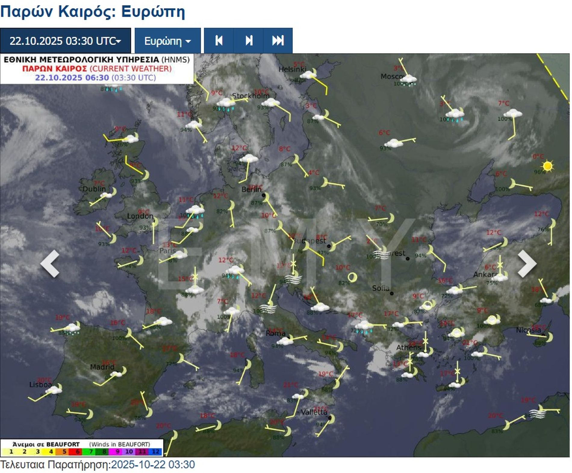 Ανεμοι: Από νότιες διευθύνσεις 3 με 4 και στα ανατολικά και νότια τοπικά 5 μποφόρ.