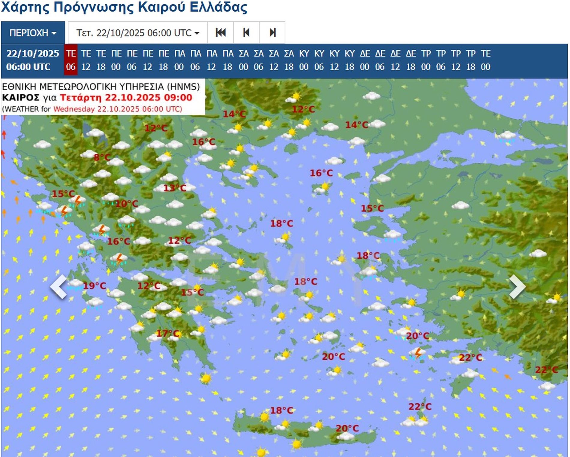 Θερμοκρασία: Από 13 έως 22 και στα Δωδεκάνησα από 16 έως 24 με 25 βαθμούς Κελσίου.