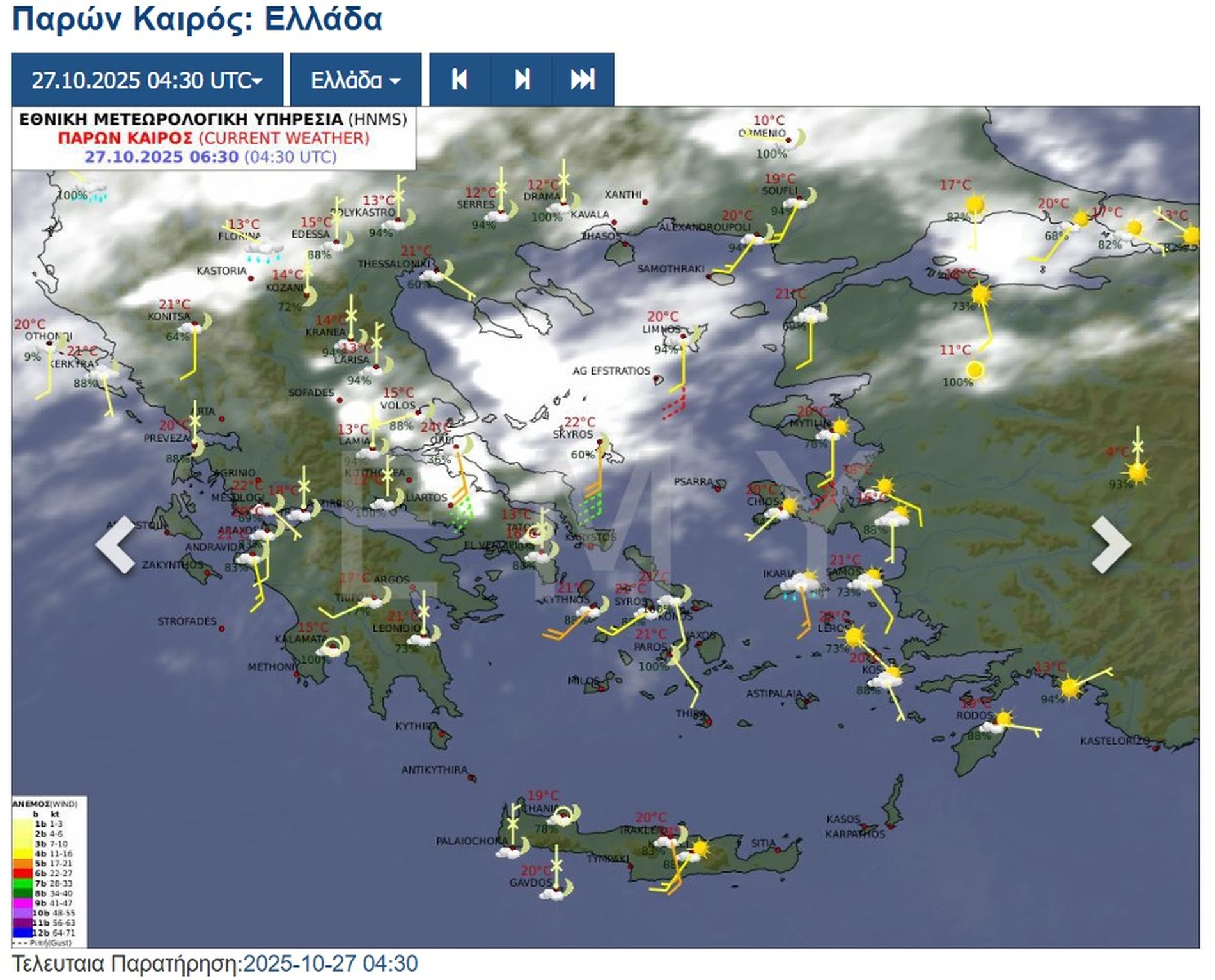 Ανεμοι: Νότιοι νοτιοδυτικοί 3 με 5 και στα ανατολικά θαλάσσια-παραθαλάσσια τμήματα 6 και γρήγορα έως 7 μποφόρ. Από τις προμεσημβρινές ώρες και βαθμιαία από τα δυτικά θα στραφούν σε δυτικούς βορειοδυτικούς και θα εξασθενήσουν.