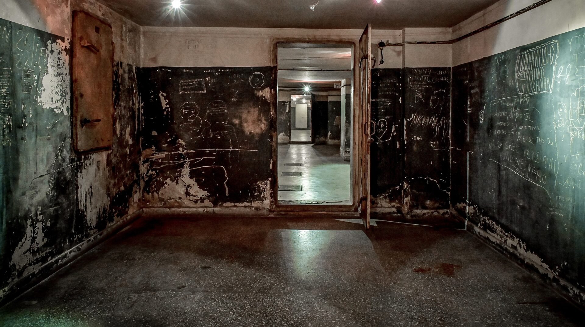 Στους τοίχους του δευτέρου, και σε μικρότερο βαθμό του πρώτου υπογείου, οι κρατούμενοι χάραζαν ή έγραφαν, με όποιο αιχμηρό αντικείμενο διέθεταν, μηνύματα, ονόματα, χρονολογίες και σχέδια: ανθρώπινες φιγούρες, καράβια, τραμ, αυτοκίνητα. Έτσι, κληροδότησαν στις επόμενες γενιές ανεξίτηλα ίχνη ιστορικής μνήμης.