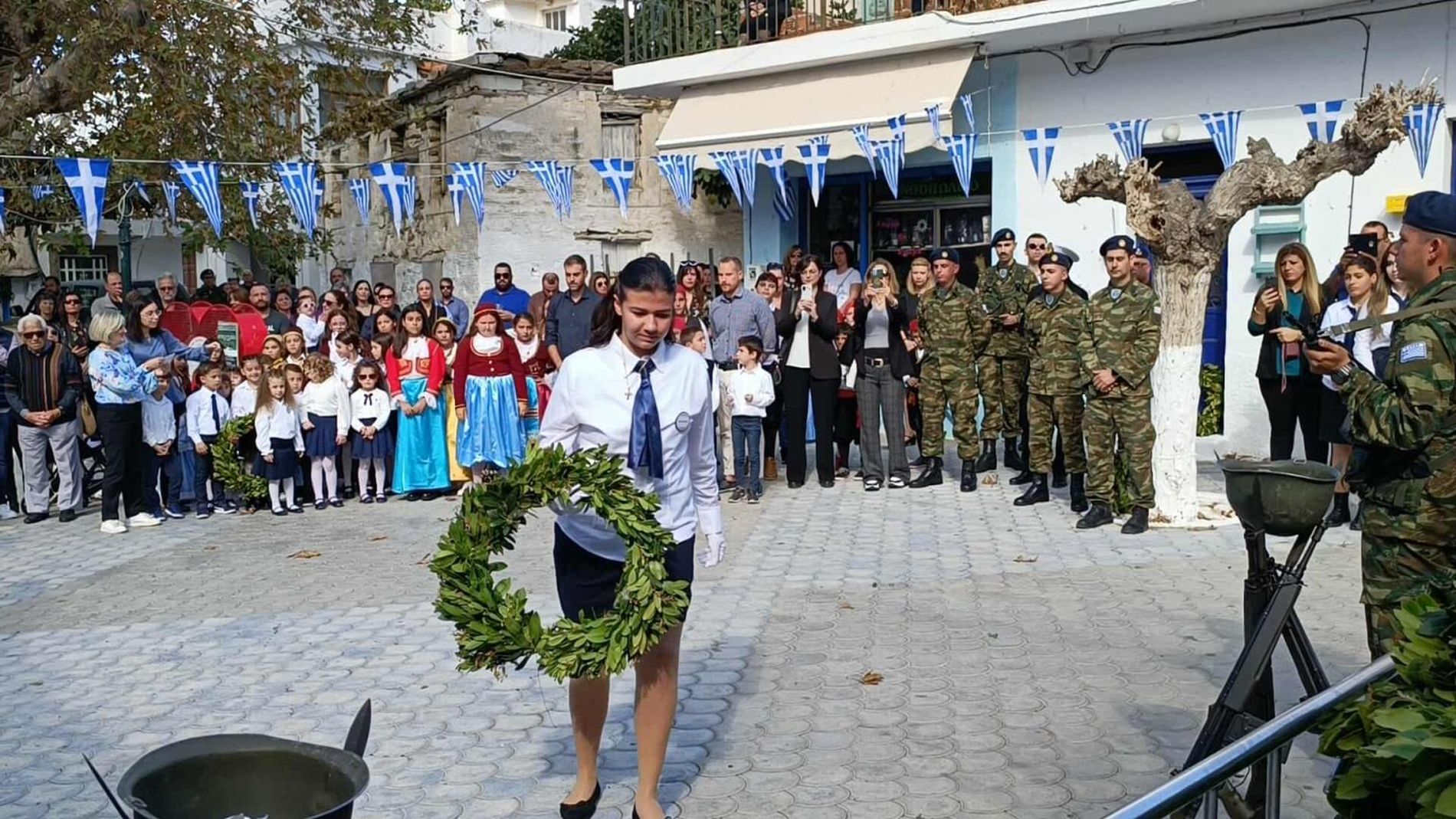 Ιδιαίτερα συγκινητική στιγμή αποτέλεσε η στιγμή κατά την οποία οι μαθητές των σχολείων του νησιού απήγγειλαν ποιήματα μπροστά στο μνημείο των πεσόντων ηρώων. Οι νεαρές φωνές των παιδιών, γεμάτες ενθουσιασμό και περηφάνια, θύμισαν σε όλους ότι το πνεύμα της 28ης Οκτωβρίου παραμένει ζωντανό και διαχρονικό.